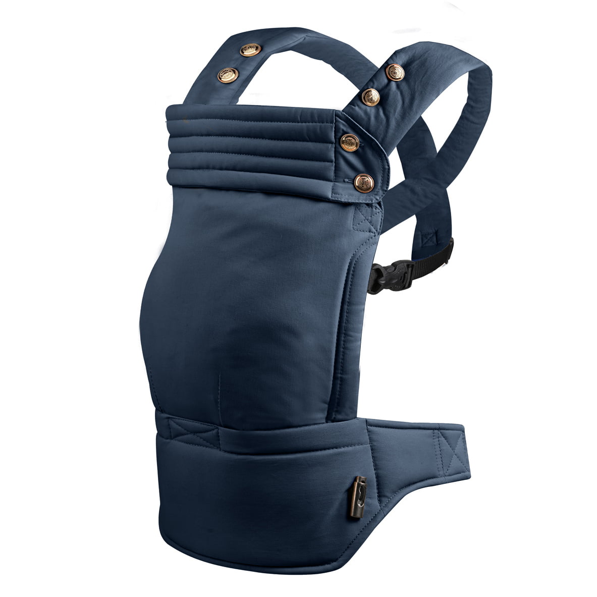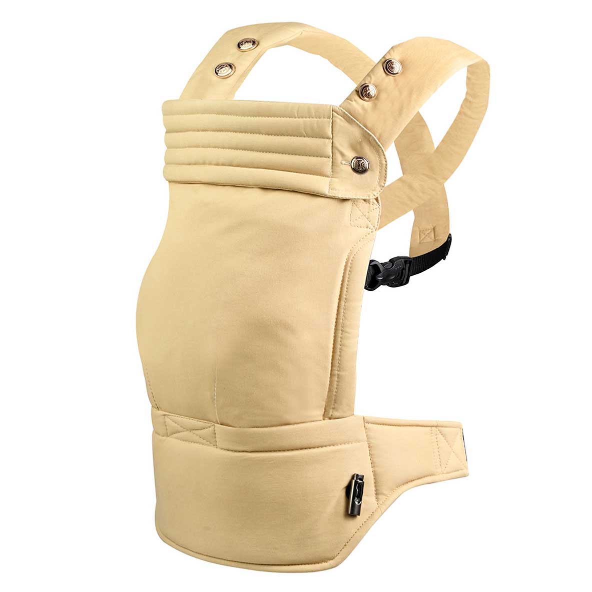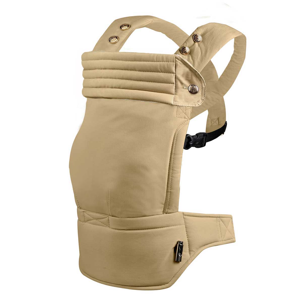 - The hip belt: You click the clicker of the hip belt on your stomach at the front and then turn the clicker backwards. The smaller the baby, the higher you should fasten the hip belt.